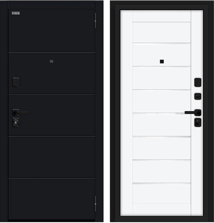 Надежная входная Дверь Браво Прайм/SBlack-Black Shell/White Silk премиум класса по цене 40 119 руб. Большая толщина стали защитит от проникновения в ваш дом, квартиру или коттедж. Используется очень качественная фурнитура: замки, цилиндры, ручки, защелки. Покрытие и отделка двери изготовлено под внимательным контролем производителя. Дверь имеет долгий срок службы и гарантию.