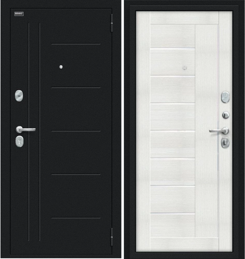Надежная входная Дверь Браво Проф Букле черное/Bianco Veralinga премиум класса по цене 32 769 руб. Большая толщина стали защитит от проникновения в ваш дом, квартиру или коттедж. Используется очень качественная фурнитура: замки, цилиндры, ручки, защелки. Покрытие и отделка двери изготовлено под внимательным контролем производителя. Дверь имеет долгий срок службы и гарантию.